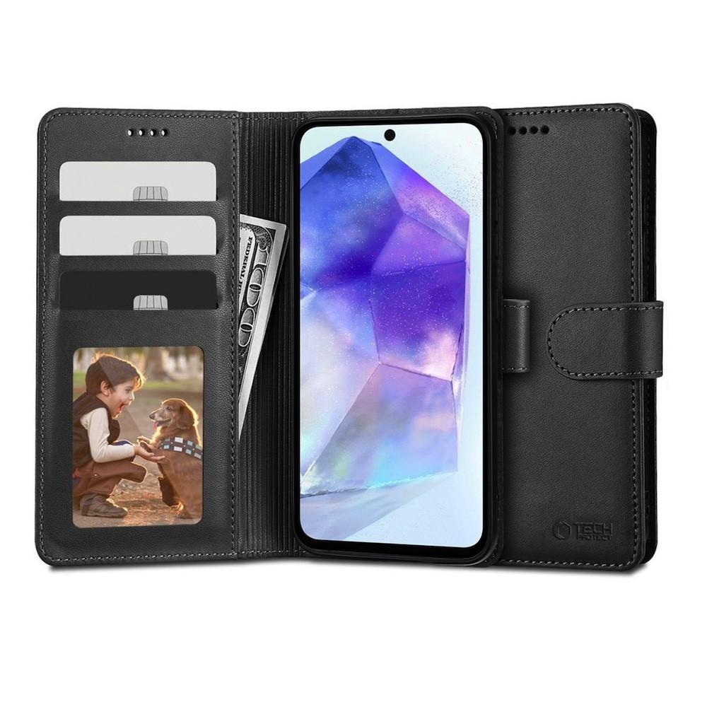 Кожен калъф, тип портфейл за Samsung Galaxy A55 5G - Tech-Protect Wallet Leather Flip Case (черен)