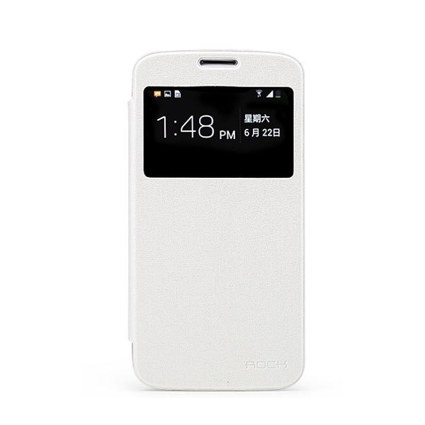 Кожен калъф, тип портфейл за Samsung Galaxy Mega 5.8 - Rock Magic Flip Case (бял)