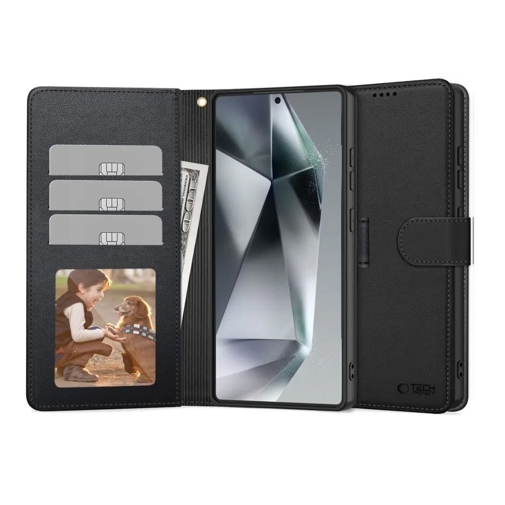 Кожен калъф, тип портфейл за Samsung Galaxy S25 - Tech-Protect Wallet Leather Flip Case (черен)
