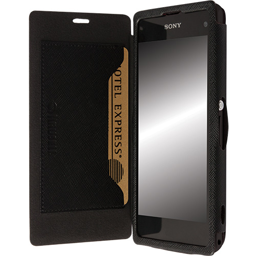 Кожен калъф, тип портфейл за Sony Xperia Z1 Compact - Krusell Malmo Flip cover (черен)