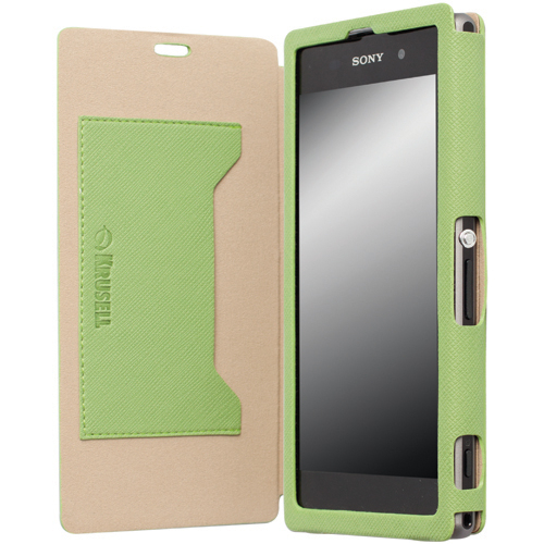 Кожен калъф, тип портфейл за Sony Xperia Z1 - Krusell Malmo Flip cover (зелен)