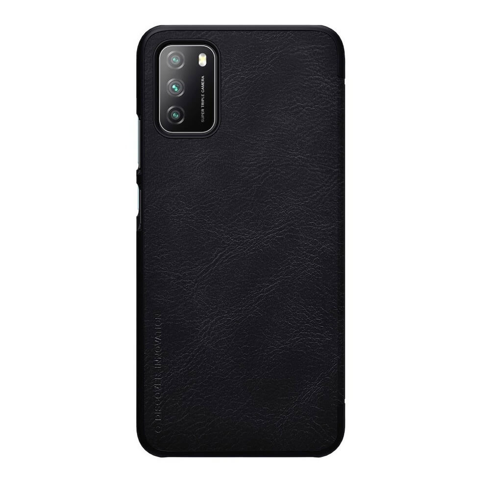 Кожен калъф, тип портфейл за Xiaomi Poco M3 - Nillkin Qin Leather Flip Case (черен)