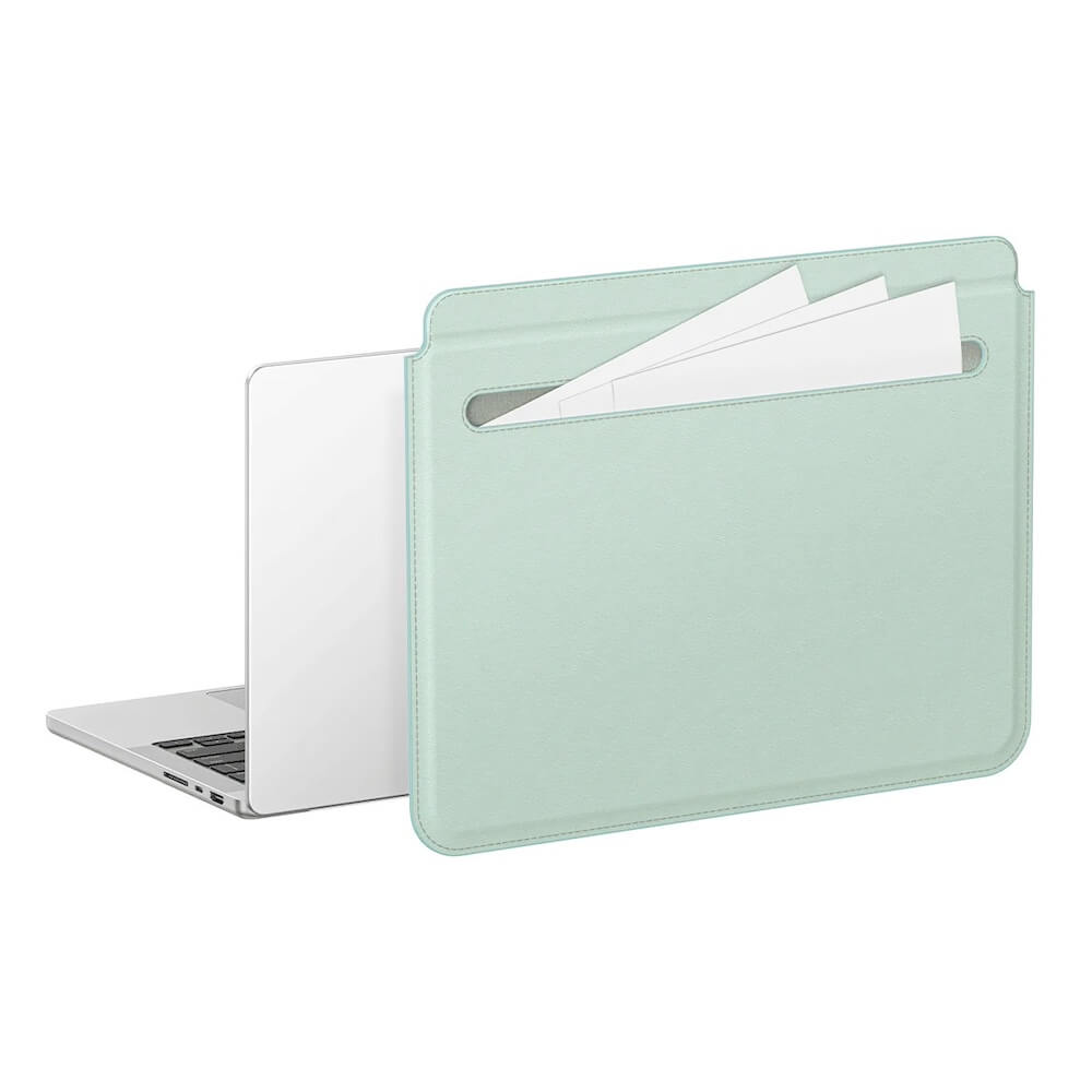 Кожен калъф за MacBook Air 13, MacBook Pro 13, MacBook Pro 14 и лаптопи до 14 инча - AmazingThing Matte Pro Mag Laptop Sleeve with Pocket 14 (зелен)