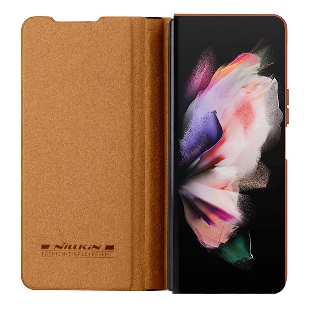 Кожен калъф за Samsung Galaxy Z Fold 4 - Nillkin Qin Leather Pro Case (кафяв)
