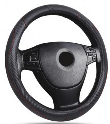 Кожен калъф за волан 38см - Carbon - карбон с червени шевове