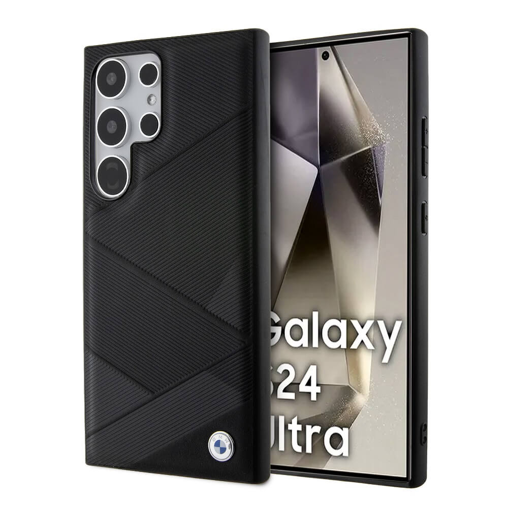 Кожен кейс (естествена кожа) за Samsung Galaxy S24 Ultra - BMW Signature Leather Metal Logo Hard Case (черен)