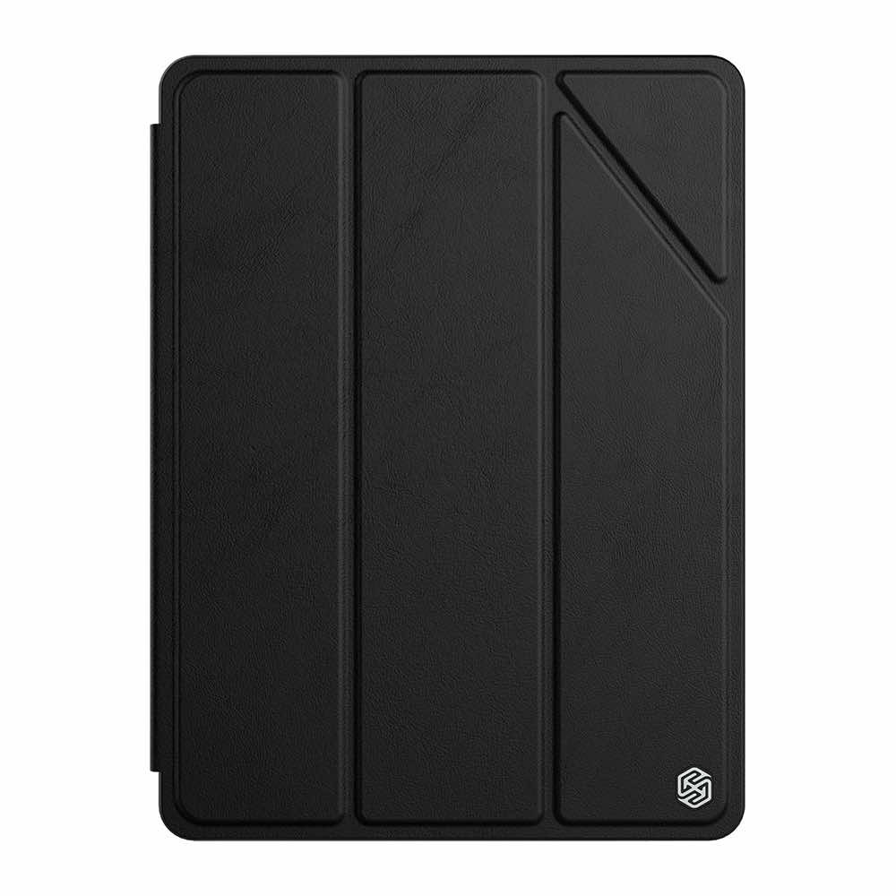 Кожен кейс и поставка с отделение за Apple Pencil за iPad 9 (2021), iPad 8 (2020), iPad 7 (2019) - Nillkin Bevel Leather Case (черен)