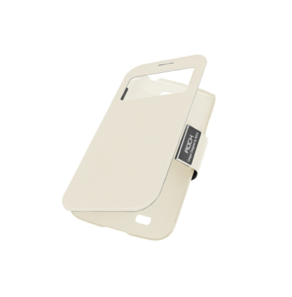 Кожен кейс и поставка за Samsung Galaxy S4 Mini - Rock Flip Case Flexible Series (бял)