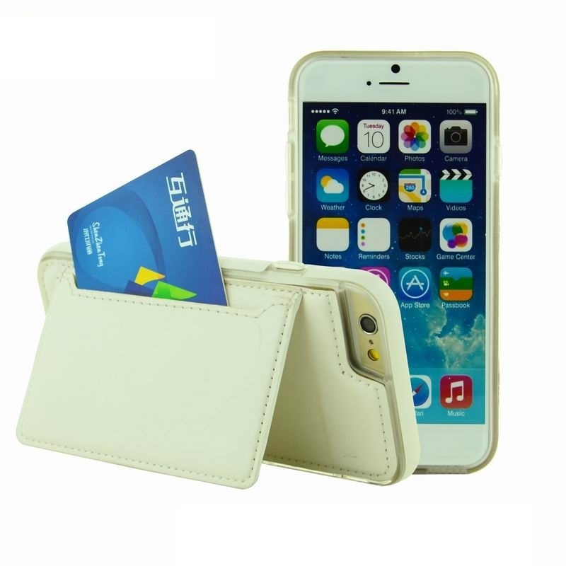 Кожен кейс с поставка и джоб за карта за iPhone 6S, iPhone 6 - TIPX Ecoly Leather Case (бял)