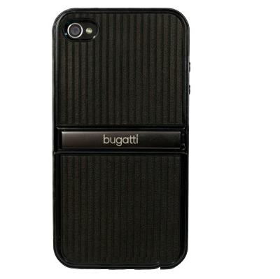 Кожен кейс с поставка за iPhone 4/4S - Bugatti StandCover (черен)