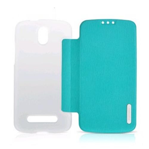 Кожен кейс с твърда задна част за HTC Desire 500 - Remax Leather Case (син)