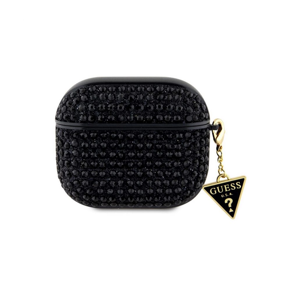 Кожен кейс с висулка за Apple Airpods 3 - Guess Airpods 3 Rhinestones Triangle Metal Logo Case (черен)