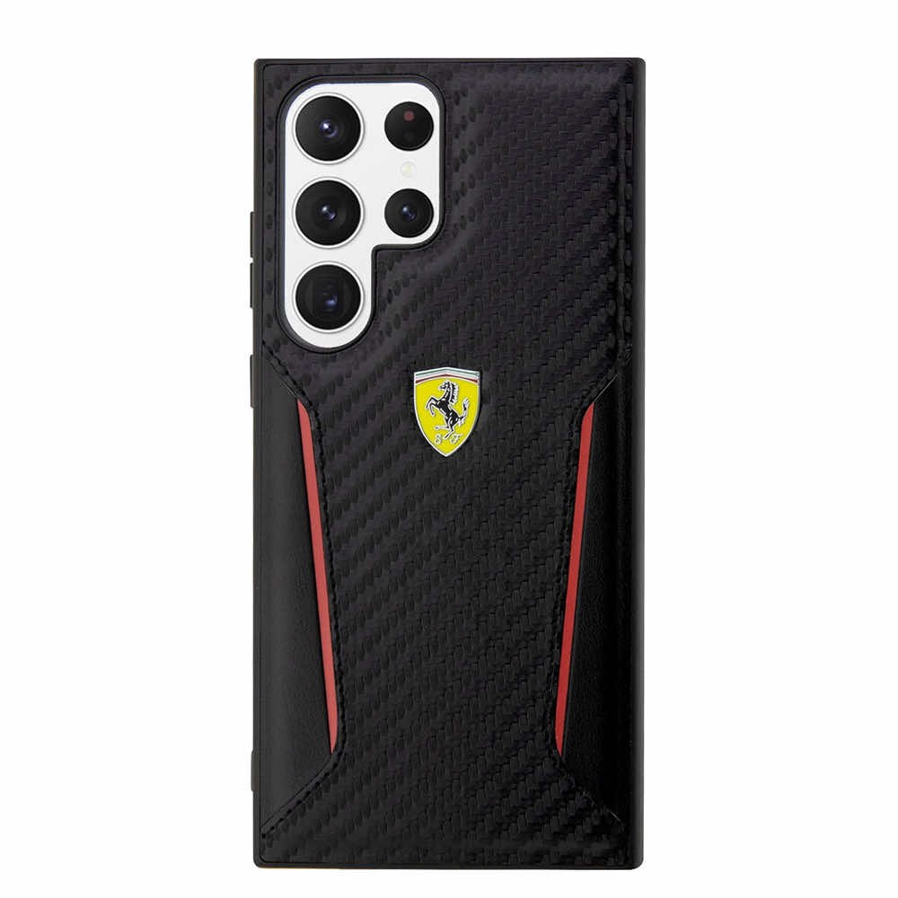 Кожен кейс за Samsung Galaxy S23 Ultra - Ferrari PU Carbon Leather Hard Case (черен)