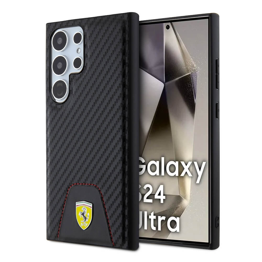 Кожен кейс за Samsung Galaxy S24 Ultra - Ferrari PU Bottom Carbon Leather Hard Case (черен)