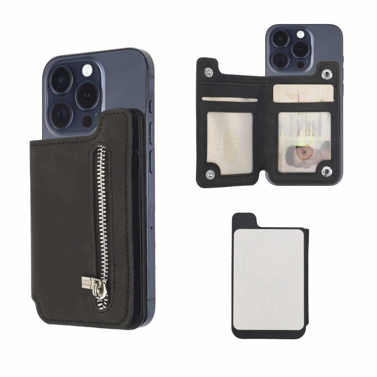 Кожен портфейл (джоб) за прикрепяне към iPhone с MagSafe - 4smarts Universal Magnet Wallet CompactCaddy (черен)