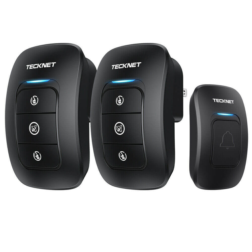 Комплект 2 броя иновативни безжични звънци и предавател за входна врата - TeckNet HWD01162BU02 Wireless Plug-in Digital Doorbell (черен)