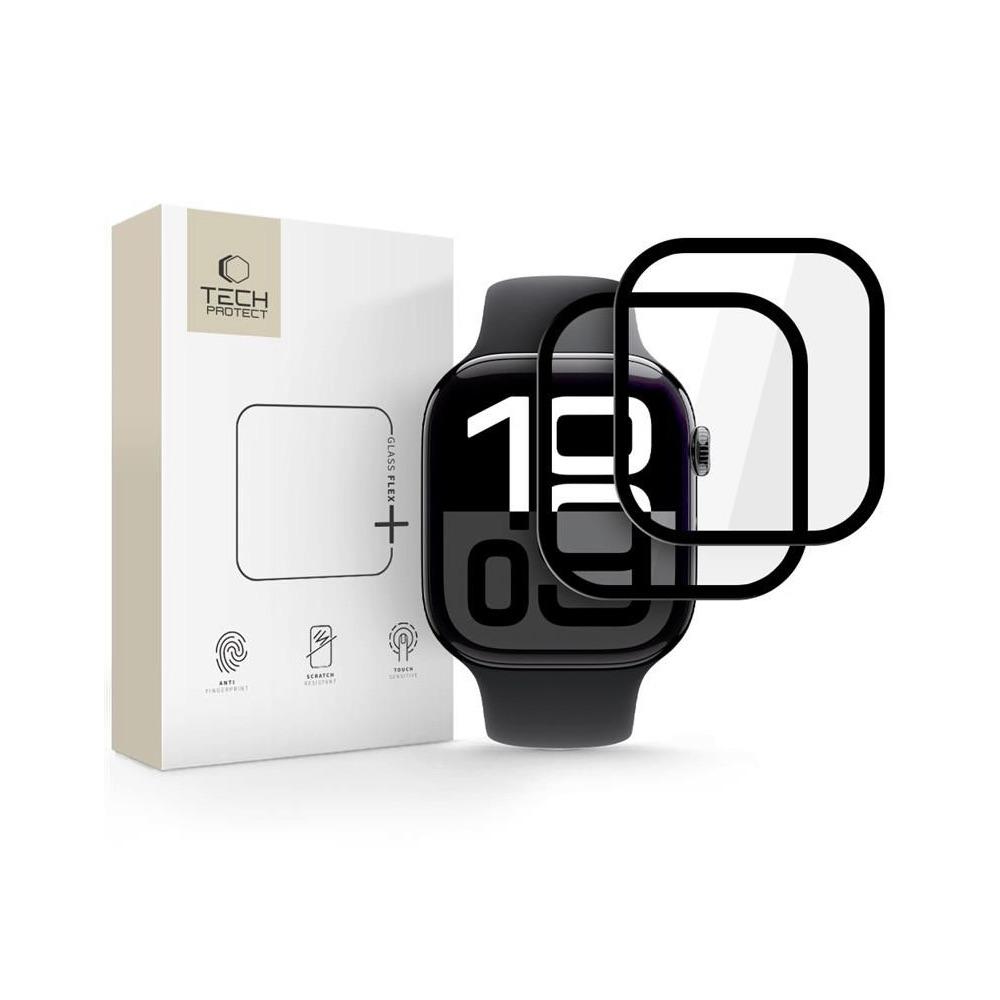Комплект 2 броя предпазни хибридни защитни покрития за дисплея на Apple Watch 10 46мм, Apple Watch 11 46мм - Tech-Protect Glass Flex Plus (черен-прозрачен)