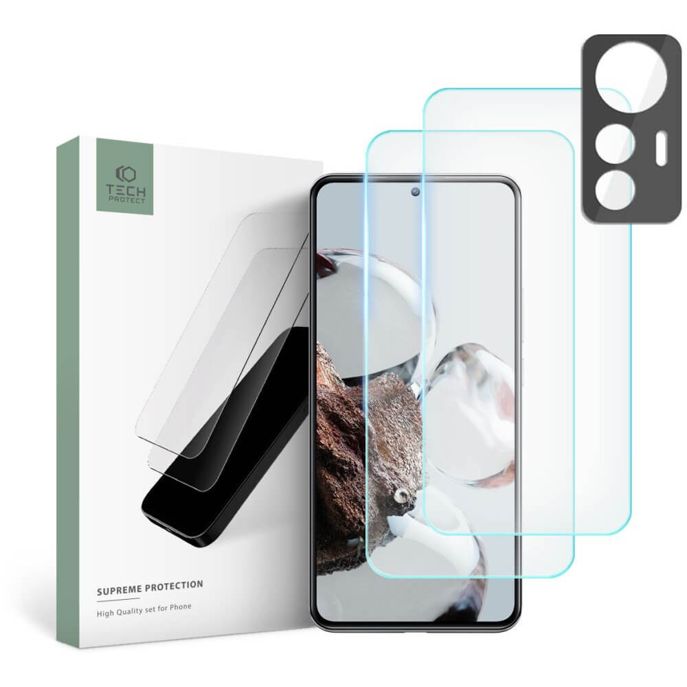 Комплект 2 броя стъклено защитно покритие за дисплея и стъклено защитно покритие за камерата на Xiaomi 12T - Tech-Protect Supreme Protection Set (прозрачен)
