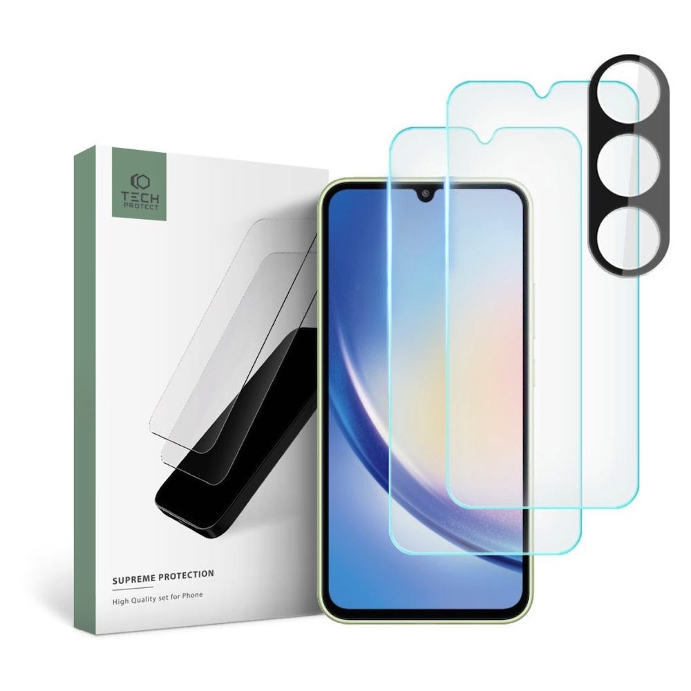 Комплект 2 броя стъклено защитно покритие за дисплея и стъклено защитно покритие за камерата на Samsung Galaxy A34 5G - Tech-Protect Supreme Protection Set (прозрачен)
