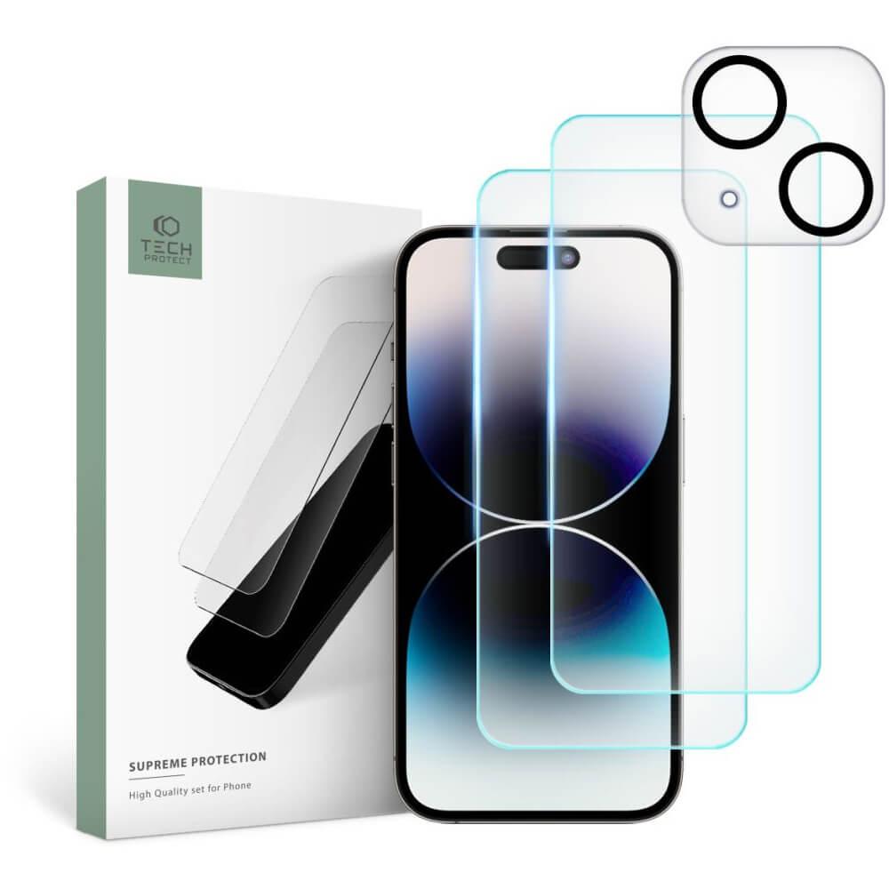 Комплект 2 броя стъклено защитно покритие за дисплея и стъклено защитно покритие за камерата на iPhone 15 Plus - Tech-Protect Supreme Protection Set (прозрачен)