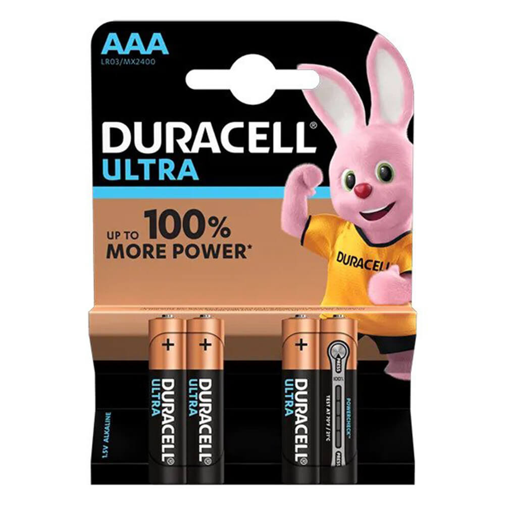 В комплекта са включени 4 броя Duracell Ultra Power MX2400 AAA батерии