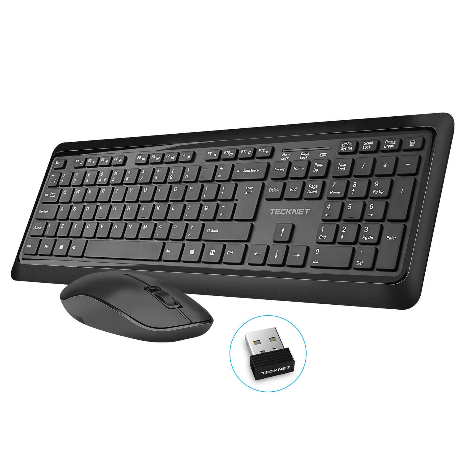 Комплект безжични клавиатура и мишка - Tecknet Wireless Keyboard and Mouse Set X10616 (черен)