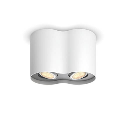 Комплект двойна таванна лампа с бяла светлина и ключ за димиране за безжично управляемо осветление за iOS и Android устройства - Philips Pillar Hue Double Spotlight And Dimmer Switch (бял)