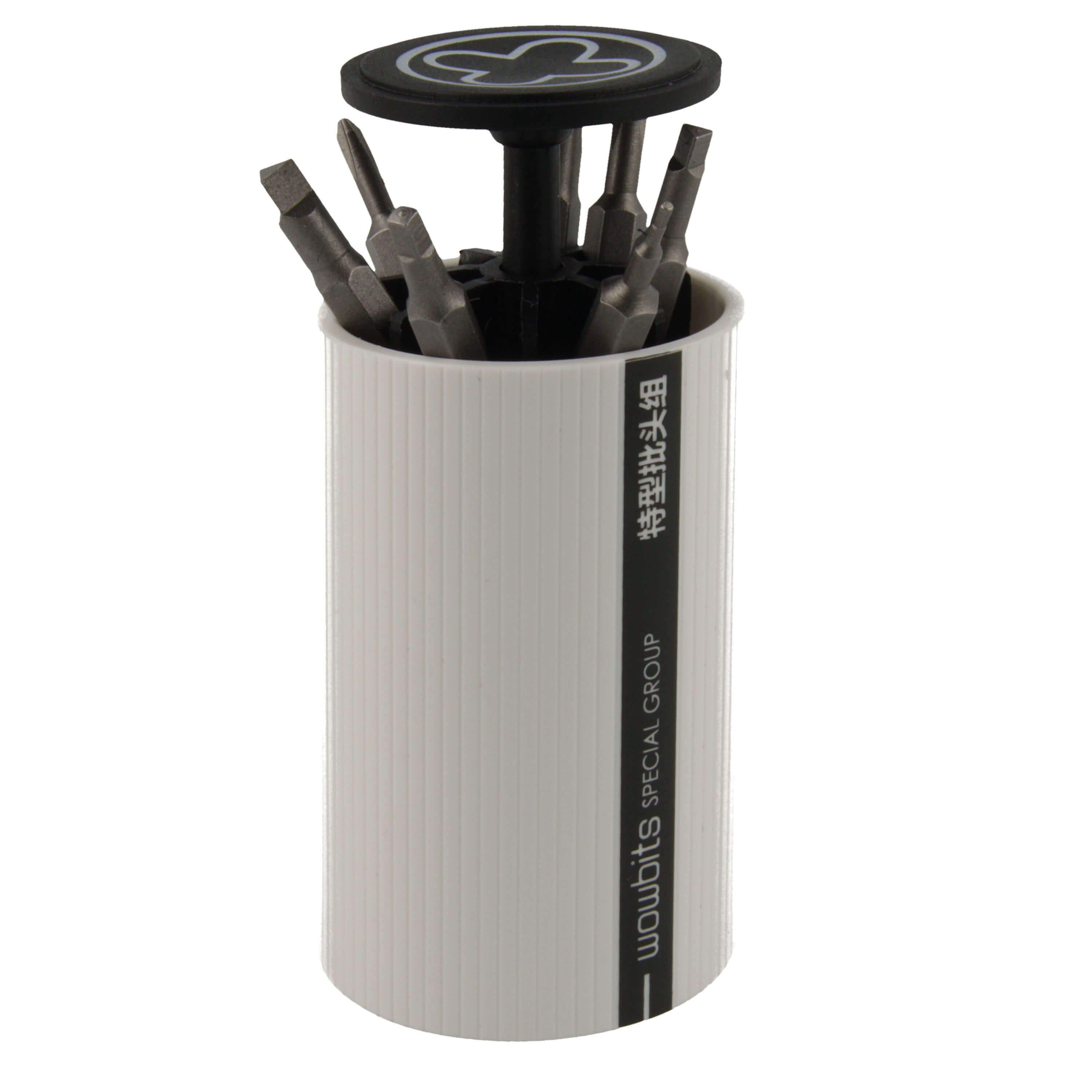 В комплекта се съдържат седем различни бита с магнитна кутия