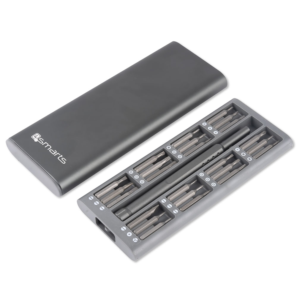 24 броя инструмента включени в комплекта - 3 x Phillips: PH000; PH00; PH00; PH1 - 3 x Torx: T2; T3; T3; T4 - 8 x Torx-Sicherheit: T5H; T6H; T7H; T8H; T9H; T10H; T10H; T15H; T20H - 7 x Slotted: 1,0; 1,5; 2,0; 2,5; 3,0; 3,5; 4,0 - Pentalobe: P2 - Tri Wing: Y0,6