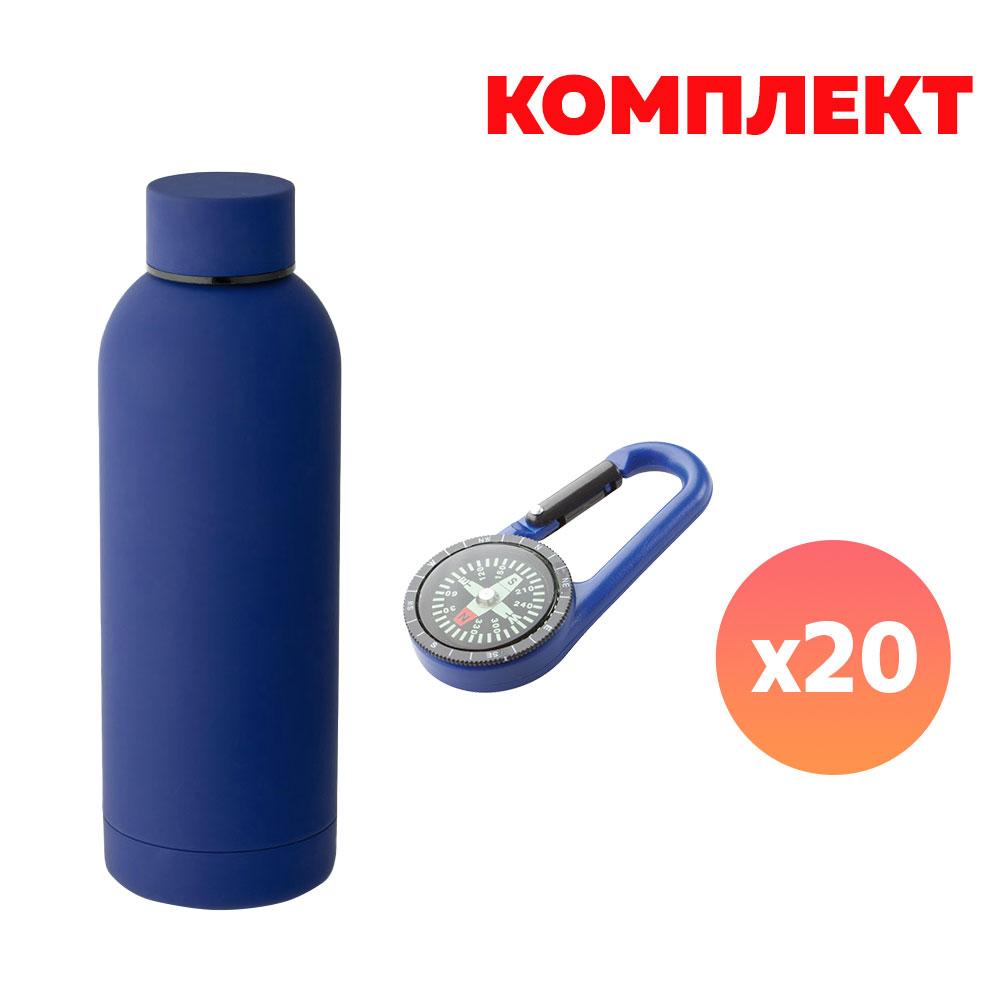 Комплект ключодържател Clark и бутилка Top, сини, по 20 броя