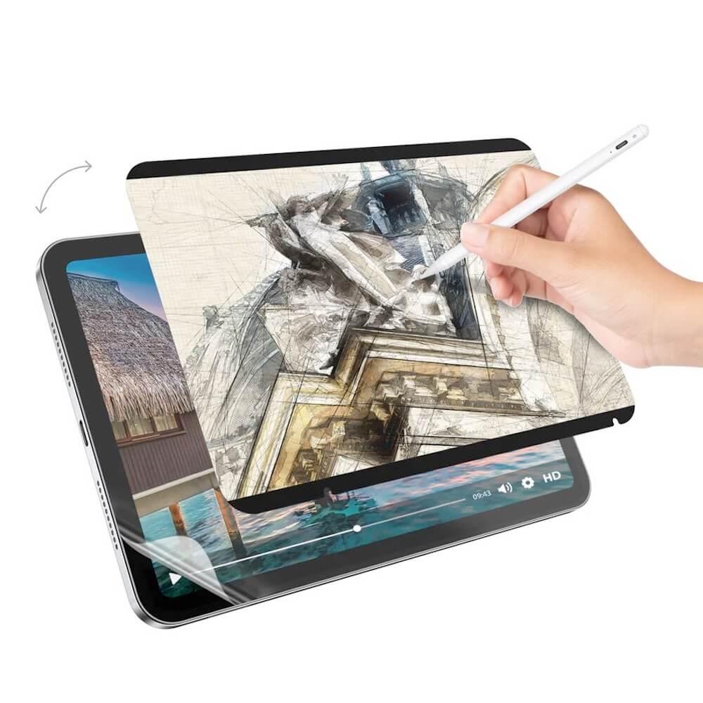 дебелина от едва 0.15 мм и допир като на истинска хартия, с това покритие и Apple Pencil в ръка, ще имате чувството, че рисувате или пишете върху хартия