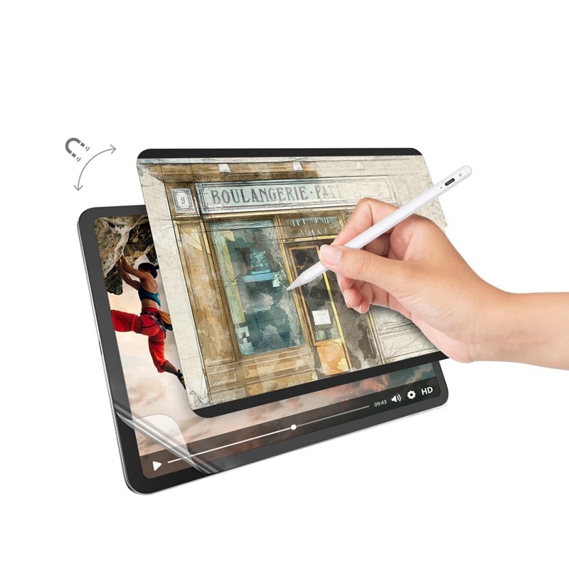 дебелина от едва 0.15 мм и допир като на истинска хартия, с това покритие и Apple Pencil в ръка, ще имате чувството, че рисувате или пишете върху хартия