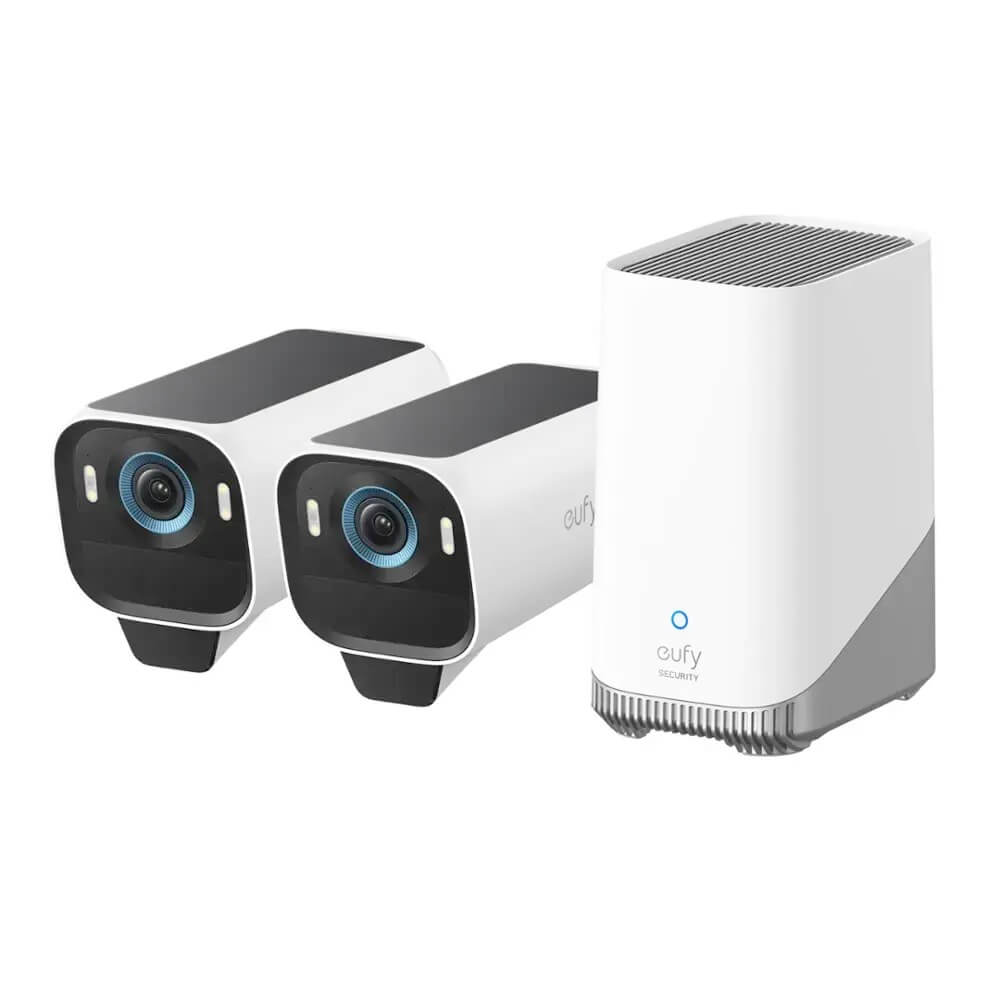 Комплект от 2 броя камери със соларно зареждане за видеонаблюдение и Home Base 3 - Anker EufyCam S3 Pro 2-Cam Kit (бял)
