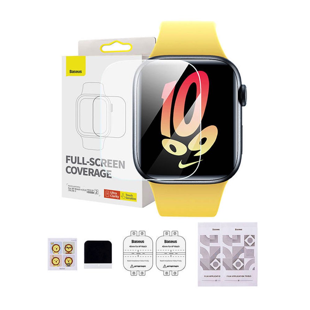 Комплект от 2 броя защитно покритие с извити ръбове за целия дисплей на Apple Watch 40мм - Baseus NanoCrystal Full Screen Protector Set (P6001510B201-00) (прозрачен)