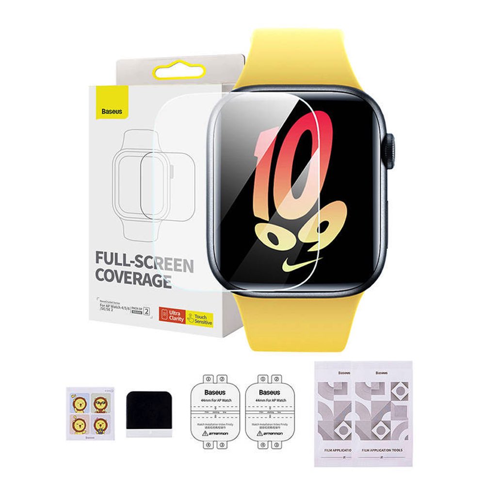Комплект от 2 броя защитно покритие с извити ръбове за целия дисплей на Apple Watch 44мм - Baseus NanoCrystal Full Screen Protector Set (P6001510B201-01) (прозрачен)