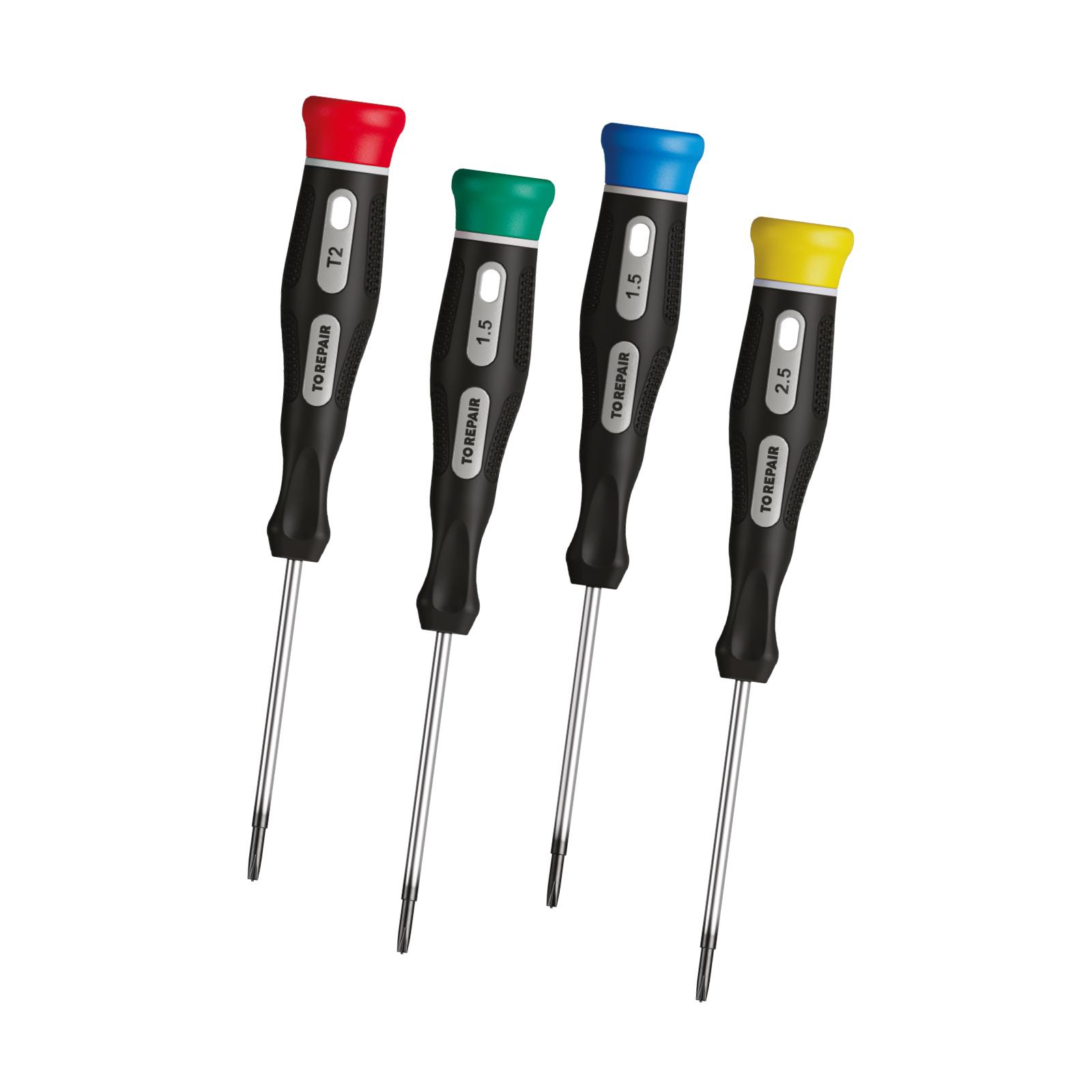 Този комплект е проектиран да осигури максимален контрол и стабилност по време на прецизни операции. Всяка отвертка има ергономична неплъзгаща се дръжка, която намалява умората на ръката и осигурява здрав захват дори при продължителна употреба. Идеална за ремонти на смартфони, таблети и малки устройства.