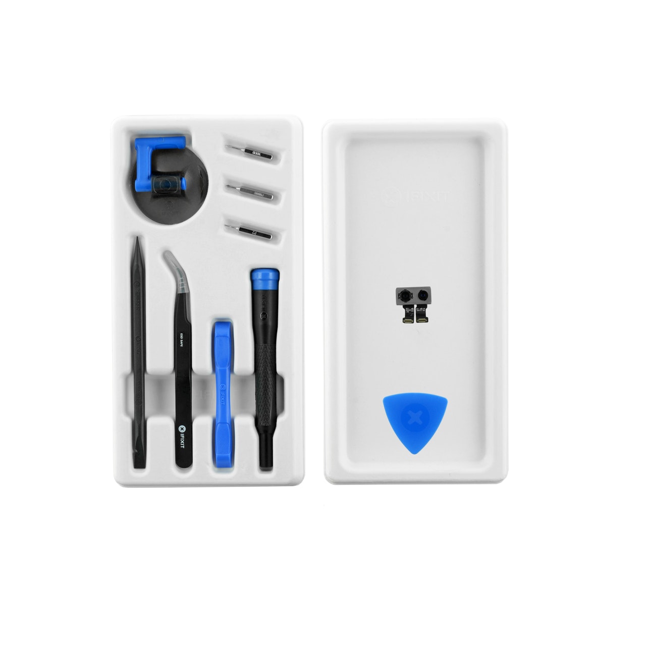 В комплекта: - Двойна задна камера за iPhone 7 Plus - Лепило за сглобяване на дисплея на iPhone 7 Plus - Инструмент за изваждане на SIM карта - Spudger - iFixit Opening Pick - iFixit инструмент за отваряне - Precision Bit Driver - 4 mm Precision Bits: - Phillips #000 - Pentalobe P2 - Tri-point Y000