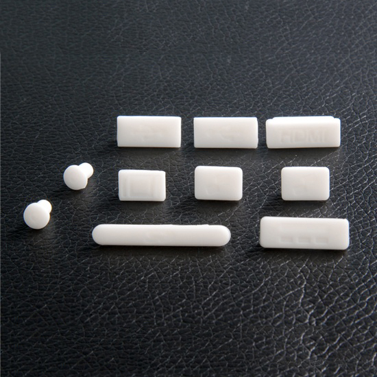 Комплектът е съставен от 10 части: - 1 х тапа за захранващият порт - 1 х тапа за HDMI порта - 1 х тапа за Ethernet порта - 2 х тапи за Thunderbolt (MiniDisplay Port) портовете - 1 х тапа за входа за слушалки - 1 х тапа за входа за микрофон