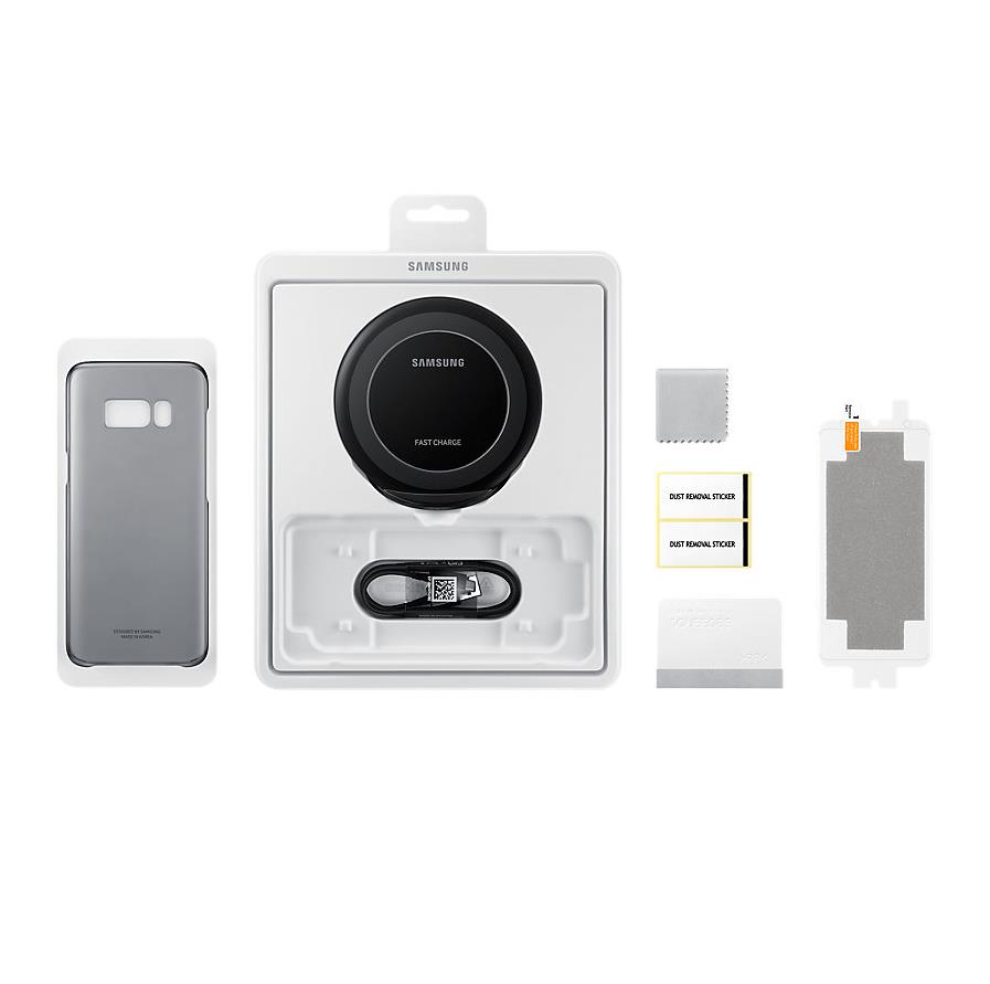 Комплект оригинални станция за безжично зареждане, TPU кейс, MicroUSB кабел и покритие за Samsung Galaxy S8 Plus (черен) - За поставката за безжично зареждане: