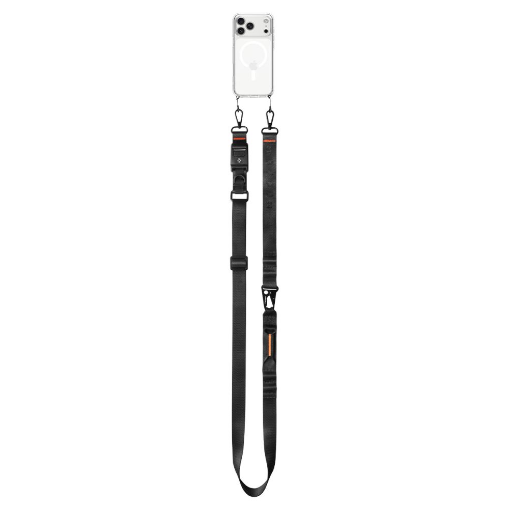 Комплект универсална връзка за носене през врата и аксесоар за прикрепяне за смартфони - Spigen Universal Crossbody Lanyard Strap and ConTag DA30M (черен)