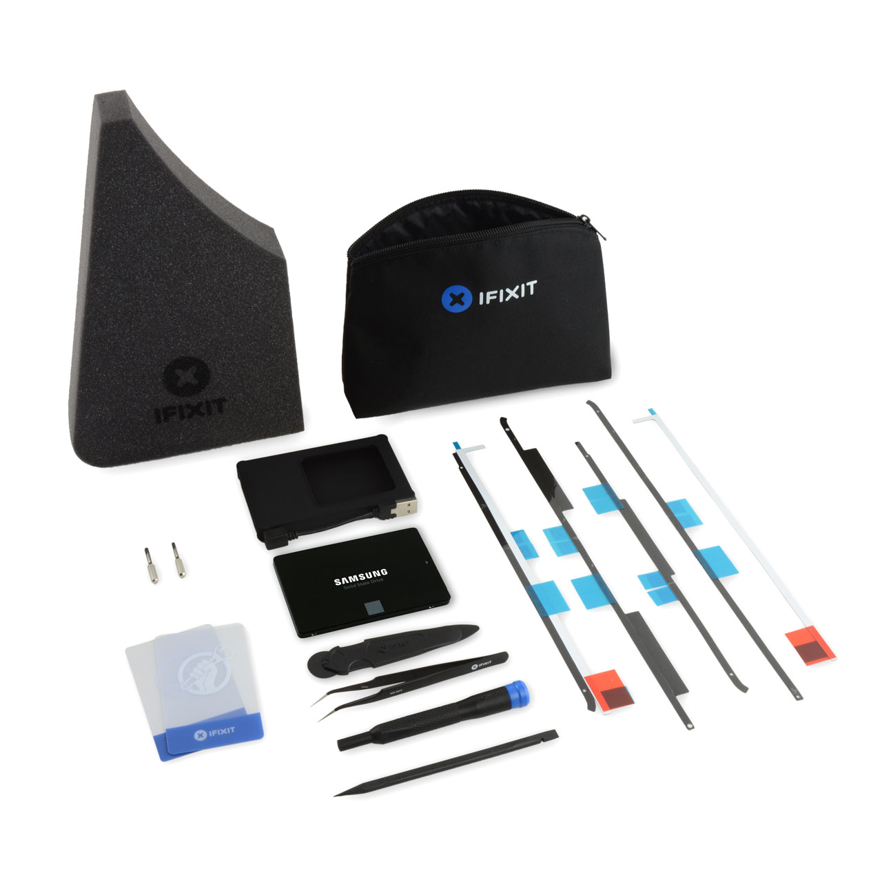 Съдържание на комплекта: - Samsung 860 EVO SSD 1 TB - Силиконова кутия 2.5" с USB 2.0 кабел - iMac Intel 21.5" (2012-2017) Adhesive Strips - iMac Service Wedge - Plastic Card (x2) - iMac Opening Wheel - Precision Bit Driver - 4 mm Precision Bits: - Torx Security TR8 - Torx Security TR10