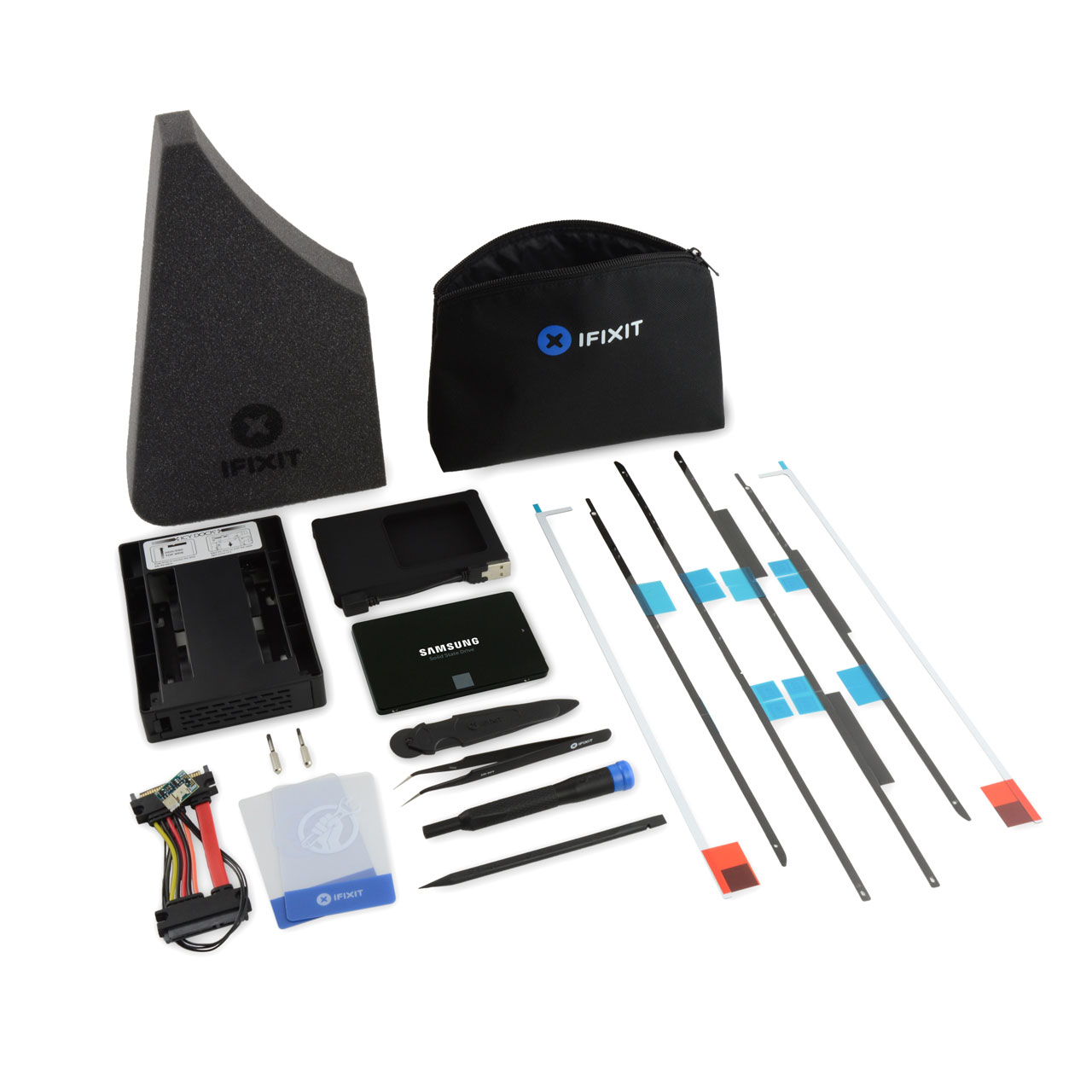 Съдържание на комплекта: - Samsung 860 EVO SSD 1 TB - Силиконова кутия 2.5" с USB 2.0 кабел - iMac Intel 21.5" and 27" Late 2012-Mid 2017 SSD Temperature Sensor - IcyDock 2.5" to 3.5" Adapter - iMac Intel 27" (2012-2017) Adhesive Strips - iMac Service Wedge - Plastic Card (x2) - Spudger - Precision Bit Driver - 4 mm Precision Bits: - Torx Security TR8 - Torx Security TR10