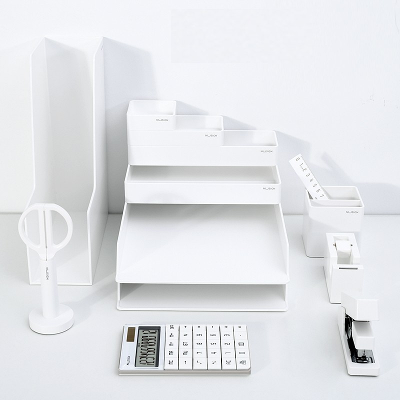 Комплект за бюро Deli NuSign, ENS003, 13 части, хоризонтални/вертикални поставки и аксесоари, бели