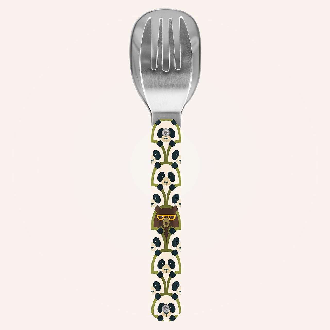 Прибори за хранене от мартензитна неръждаема стомана 2CR14, полирано огледално покритие. Състои се от лъжица и вилица с 4 зъба. Декорирана прозрачна полимерна дръжка. Магнитно сглобяване. Доставя се с твърд калъф за носене от полипропилен (PP). Подходящи за съдомиялна машина.