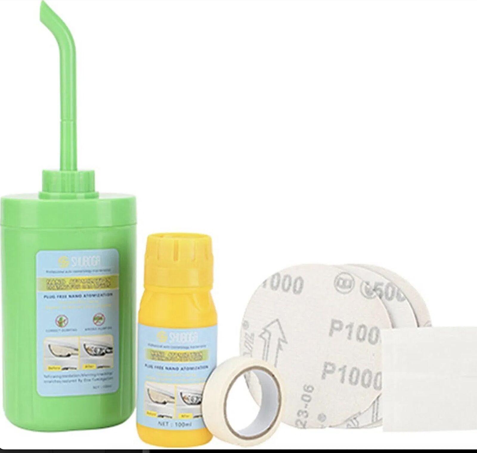 <h3 data-start=\"184\" data-end=\"239\">Комплект за възстановяване и почистване на фарове</h3>\n<p data-start=\"241\" data-end=\"468\">Върнете прозрачността и блясъка на фаровете си с този <strong data-start=\"295\" data-end=\"325\">комплект за възстановяване</strong>, който ефективно премахва пожълтяване, окисляване, замъгляване и леки надрасквания. Подобрява видимостта и безопасността при нощно шофиране.</p>\n\n\n<hr data-start=\"470\" data-end=\"473\" />\n\n<h4 data-start=\"475\" data-end=\"492\">Предимства</h4>\n<ul data-start=\"493\" data-end=\"796\">\n \t<li data-start=\"493\" data-end=\"555\">\n<p data-start=\"495\" data-end=\"555\">Широка приложимост – подходящ за всички автомобилни фарове</p>\n</li>\n \t<li data-start=\"556\" data-end=\"620\">\n<p data-start=\"558\" data-end=\"620\">Ефективно премахване на замъгляване, окисляване и драскотини</p>\n</li>\n \t<li data-start=\"621\" data-end=\"675\">\n<p data-start=\"623\" data-end=\"675\">Лесна употреба – без нужда от професионални умения</p>\n</li>\n \t<li data-start=\"676\" data-end=\"736\">\n<p data-start=\"678\" data-end=\"736\">Дълготраен ефект – устойчив на автомивки, дъжд и UV лъчи</p>\n</li>\n \t<li data-start=\"737\" data-end=\"796\">\n<p data-start=\"739\" data-end=\"796\">Подобрена видимост – по-ясна и ярка светлина през нощта</p>\n</li>\n</ul>\n\n<hr data-start=\"798\" data-end=\"801\" />\n\n<h4 data-start=\"803\" data-end=\"826\">Технически данни</h4>\n<ul data-start=\"827\" data-end=\"969\">\n \t<li data-start=\"827\" data-end=\"880\">\n<p data-start=\"829\" data-end=\"880\">Име на продукта: Комплект за почистване на фарове</p>\n</li>\n \t<li data-start=\"881\" data-end=\"897\">\n<p data-start=\"883\" data-end=\"897\">Тегло: 270 г</p>\n</li>\n \t<li data-start=\"898\" data-end=\"928\">\n<p data-start=\"900\" data-end=\"928\">Размери: 15 x 6.5 x 6.5 см</p>\n</li>\n \t<li data-start=\"929\" data-end=\"969\">\n<p data-start=\"931\" data-end=\"969\">Материал: PP + нано ремонтна течност</p>\n</li>\n</ul>\n\n<hr data-start=\"971\" data-end=\"974\" />\n\n<h4 data-start=\"976\" data-end=\"1006\">Съдържание на комплекта</h4>\n<ul data-start=\"1007\" data-end=\"1160\">\n \t<li data-start=\"1007\" data-end=\"1039\">\n<p data-start=\"1009\" data-end=\"1039\">1 бр. чаша за възстановяване</p>\n</li>\n \t<li data-start=\"1040\" data-end=\"1076\">\n<p data-start=\"1042\" data-end=\"1076\">1 бр. бутилка с ремонтен разтвор</p>\n</li>\n \t<li data-start=\"1077\" data-end=\"1093\">\n<p data-start=\"1079\" data-end=\"1093\">3 бр. шкурки</p>\n</li>\n \t<li data-start=\"1094\" data-end=\"1116\">\n<p data-start=\"1096\" data-end=\"1116\">1 бр. лепяща лента</p>\n</li>\n \t<li data-start=\"1117\" data-end=\"1135\">\n<p data-start=\"1119\" data-end=\"1135\">1 бр. кърпичка</p>\n</li>\n \t<li data-start=\"1136\" data-end=\"1160\">\n<p data-start=\"1138\" data-end=\"1160\">Упътване за употреба</p>\n</li>\n</ul>\n\n<hr data-start=\"1162\" data-end=\"1165\" />\n\n<h4 data-start=\"1167\" data-end=\"1194\">Упътване за употреба</h4>\n<ol data-start=\"1195\" data-end=\"1470\">\n \t<li data-start=\"1195\" data-end=\"1294\">\n<p data-start=\"1198\" data-end=\"1294\">Отстранете капачката и монтирайте бутилката с ремонтния разтвор. Свържете пръскащата тръбичка.</p>\n</li>\n \t<li data-start=\"1295\" data-end=\"1373\">\n<p data-start=\"1298\" data-end=\"1373\">Напълнете бутилката наполовина с вода (90°C) и затегнете добре капачката.</p>\n</li>\n \t<li data-start=\"1374\" data-end=\"1470\">\n<p data-start=\"1377\" data-end=\"1470\">Дръжте дюзата на около 1 см от фара и движете плавно, без да задържате дълго на едно място.</p>\n</li>\n</ol>\n\n<hr data-start=\"1472\" data-end=\"1475\" />