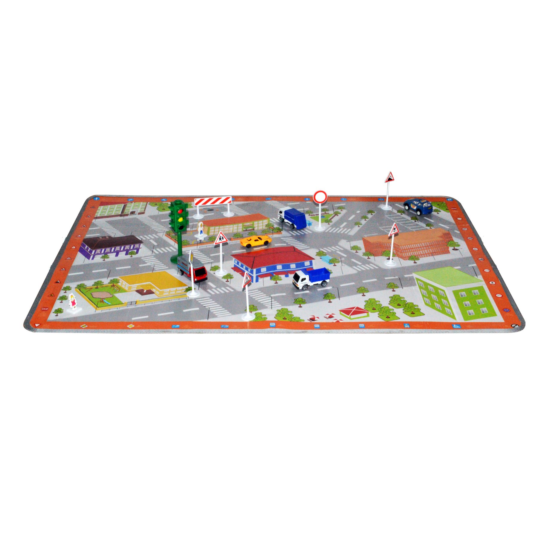 • Комплектът включва: пътни знаци, говорещ светофар, малки колички.