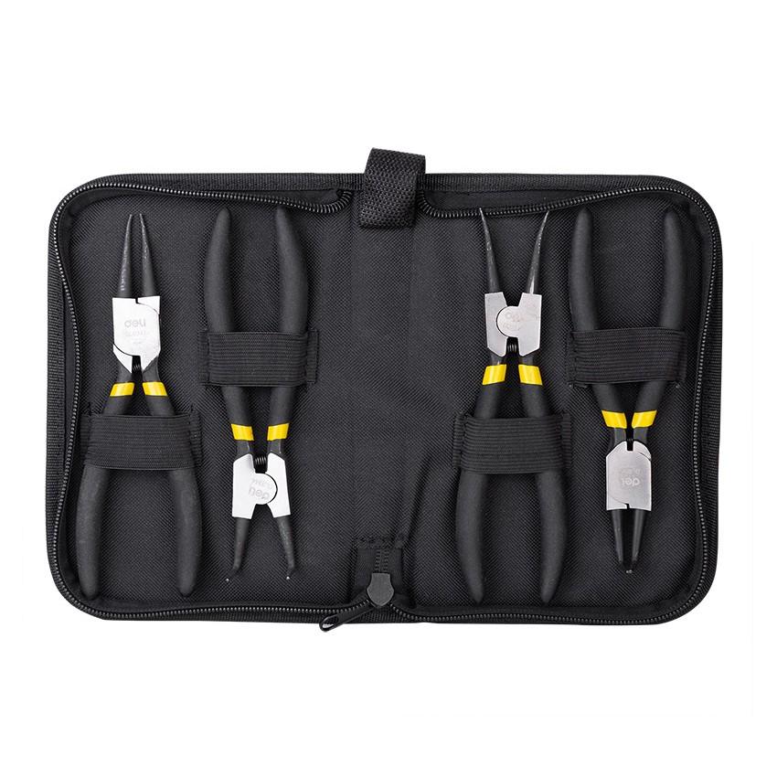 Комплект зегер клещи Deli TOOLS EDL104407, 7 "/180 мм, 4 броя, черни, в черен кейс