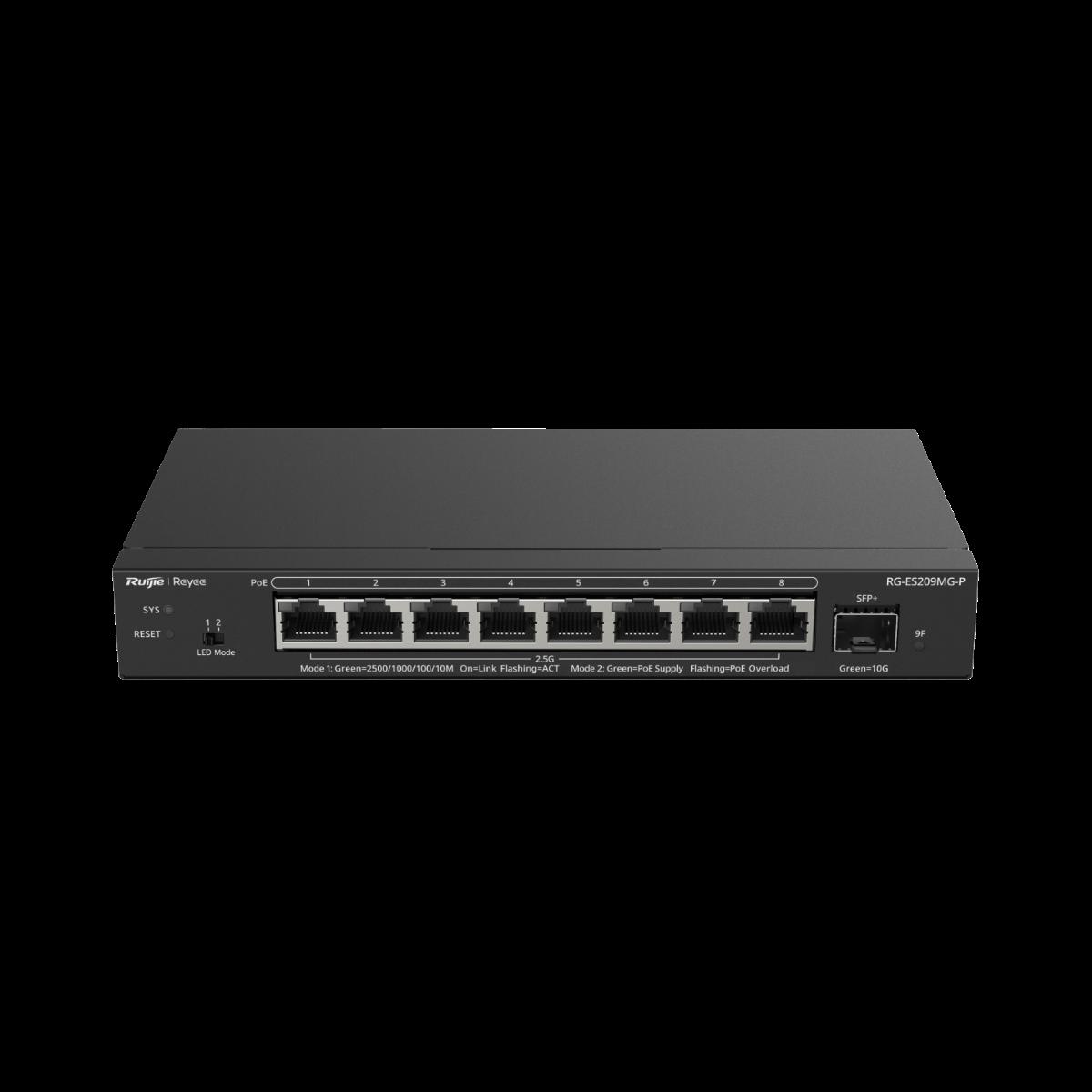 Комутатор Ruijie RG-ES209MG-P, 8x2.5G PoE+,1x10G SFP+, 130W, до 16 VLAN настолен