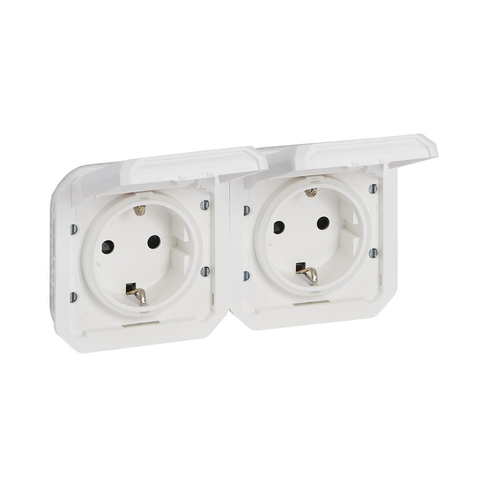 Контакт двоен Шуко 2x 2P+E 16А хоризонтален с автоматични клеми IP55 Бял - Legrand Plexo New 069675L
