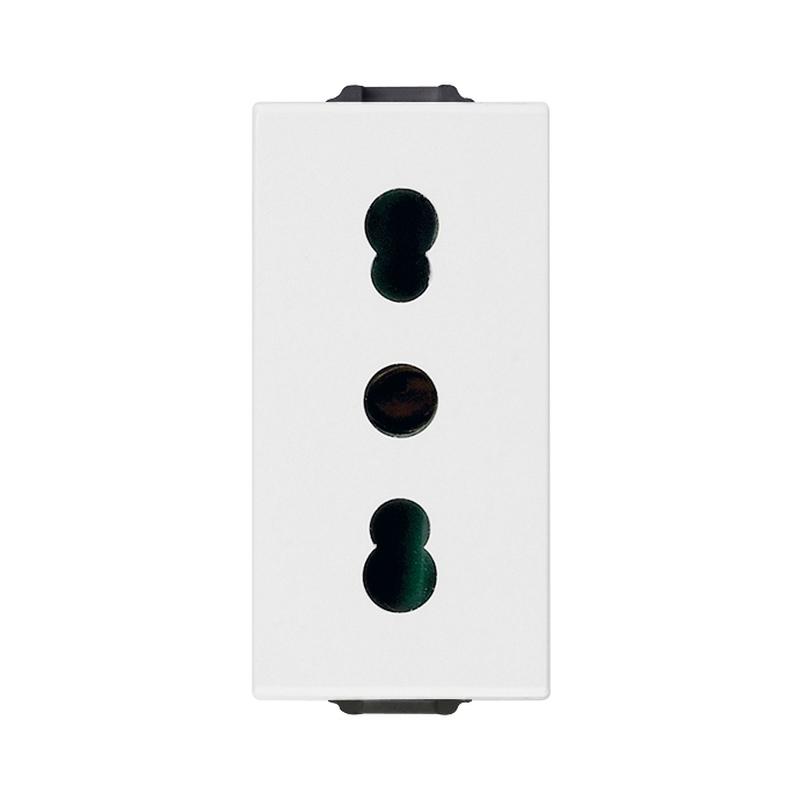 Контакт италиански стандарт 2P+E 16A 1 модул Бял Neve Up. С максимална безопасност SICURY защита - патентована технология на Vimar за автоматична механична защита на контактите. Осигурява безопасност чрез синхронен отварящ механизъм, който позволява включване само при правилно поставен щепсел. Предотвратява достъп до тоководещи части и повишава електробезопасността. Отличен избор за дом, офис, хотел, детски заведения и обществени пространства. Комбинира сигурност, функционалност и визуална елегантност.